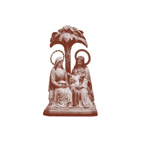 Imagen de la Sagrada Familia (sentada con palmera) realizada en pasta cartón madera siguiendo el mismo proceso artesanal desde 1880.