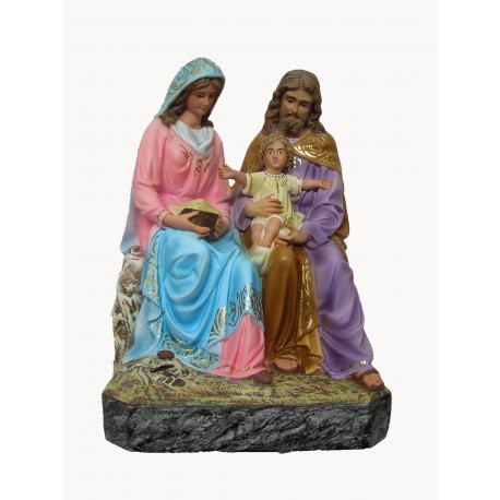 Imagen de la Sagrada Familia (sentada) realizada en pasta cartón madera siguiendo el mismo proceso artesanal desde 1880.