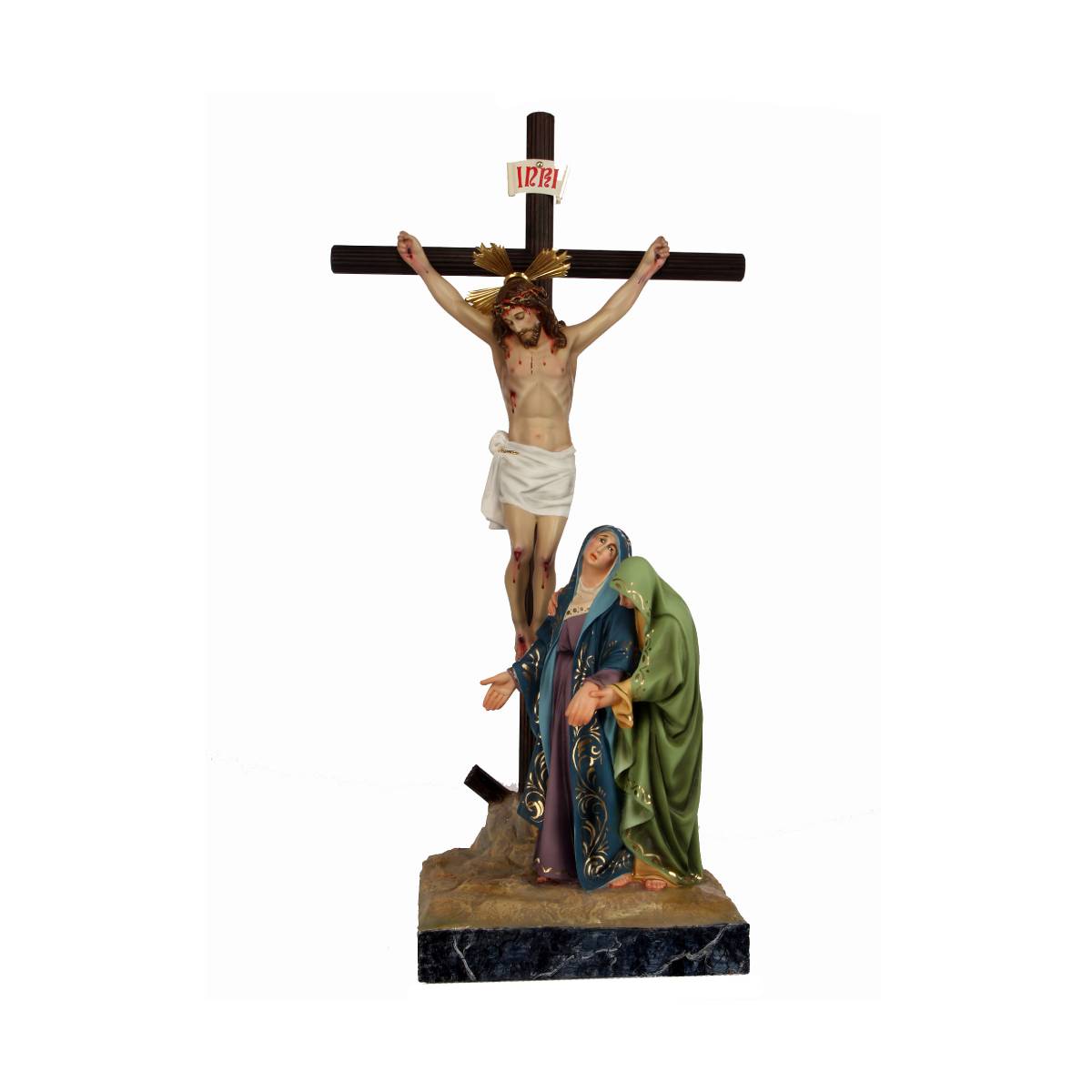 Grupo Calvario realizado en pasta cartón madera siguiendo el mismo proceso artesanal desde 1880.