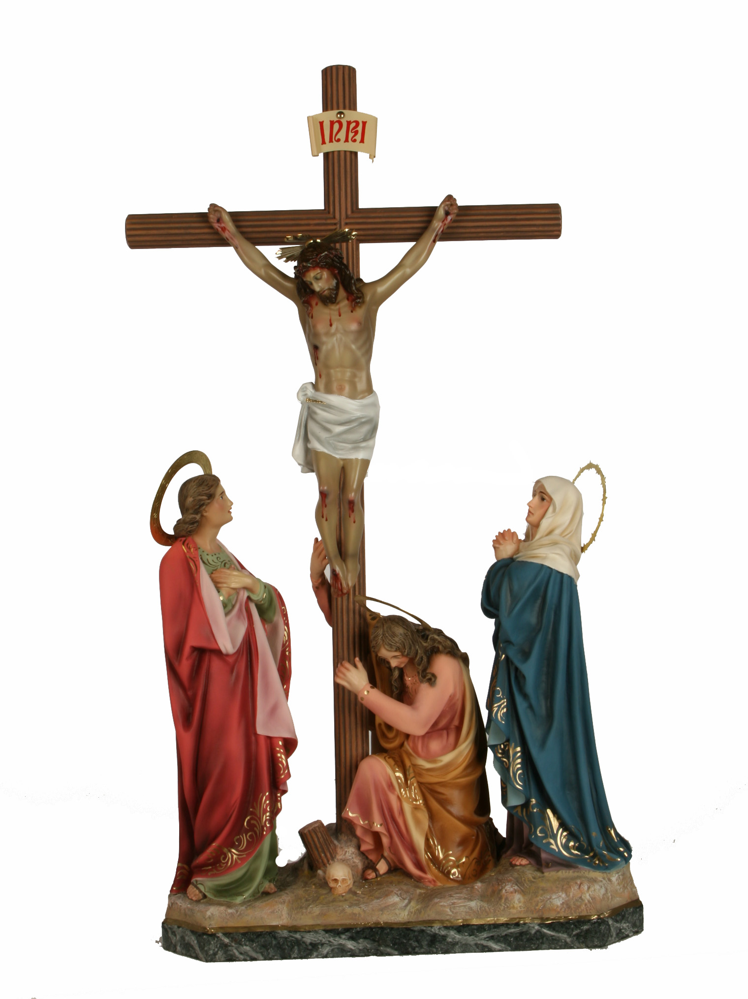 Grupo Calvario realizado en pasta cartón madera siguiendo el mismo proceso artesanal desde 1880.