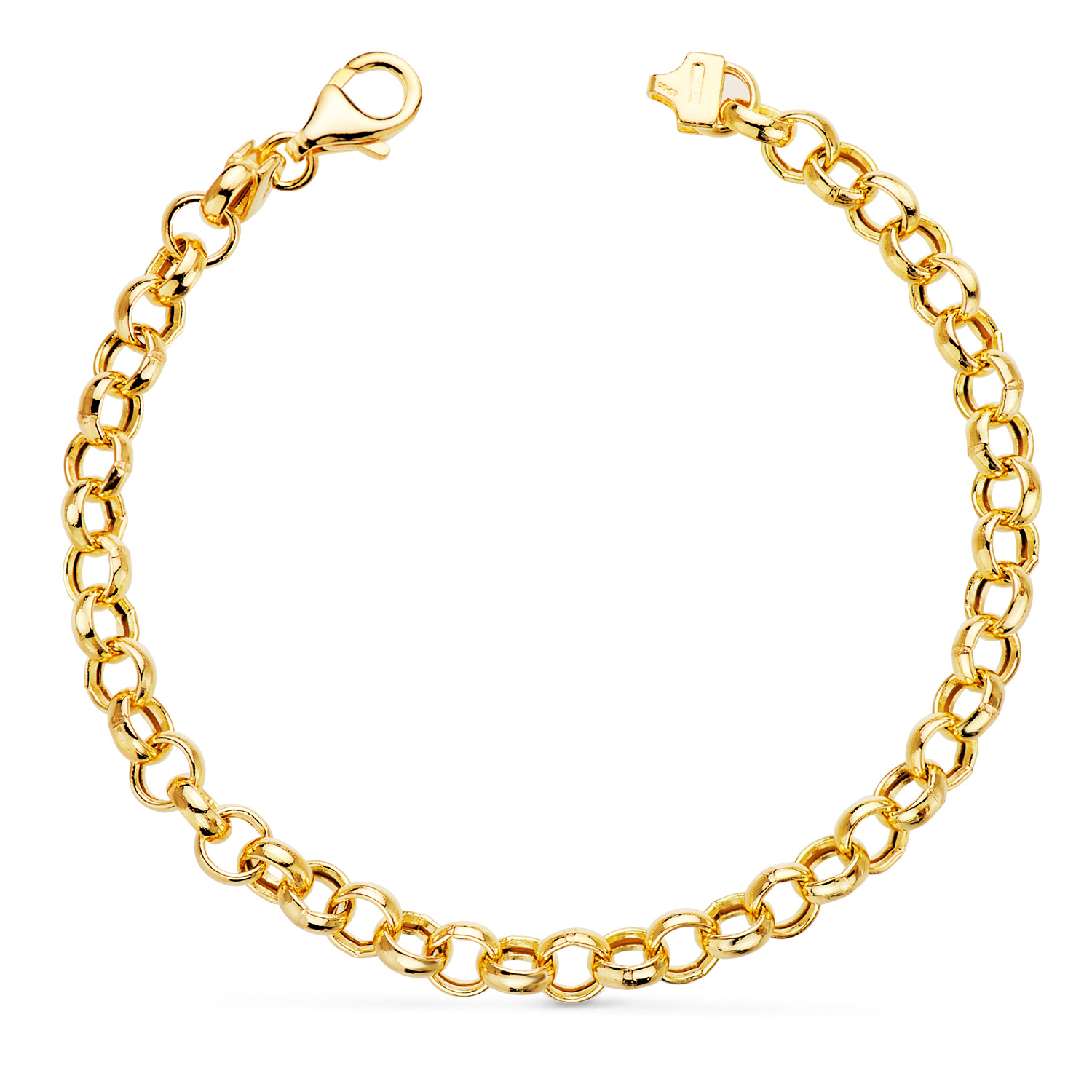 18K PULSERA ORO AMARILLO ROLO HUECA ANCHO 5 MM LARGO 19 CM