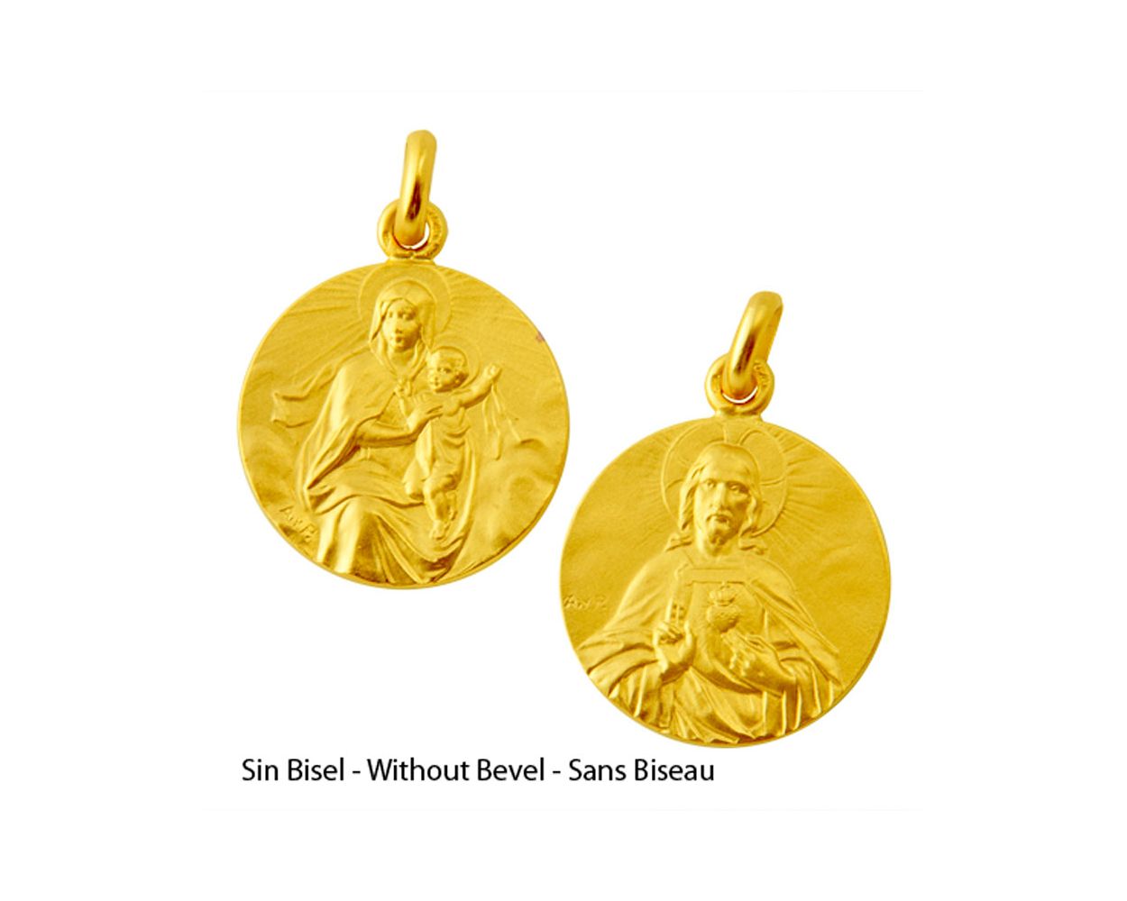 Medalla escapulario de la Virgen del Carmen V2 y el Sagrado Corazon de Jesus en oro de 18 quilates, o plata de 925.